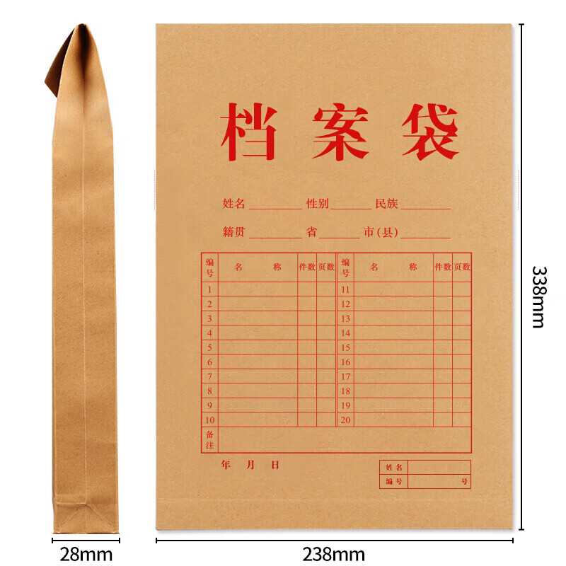 西玛(SIMAA) 单据凭证 51091 A4混浆200g牛皮纸档案袋*10只 侧宽2.8cm 合同文件袋 资料袋 票据收纳袋 办公用品