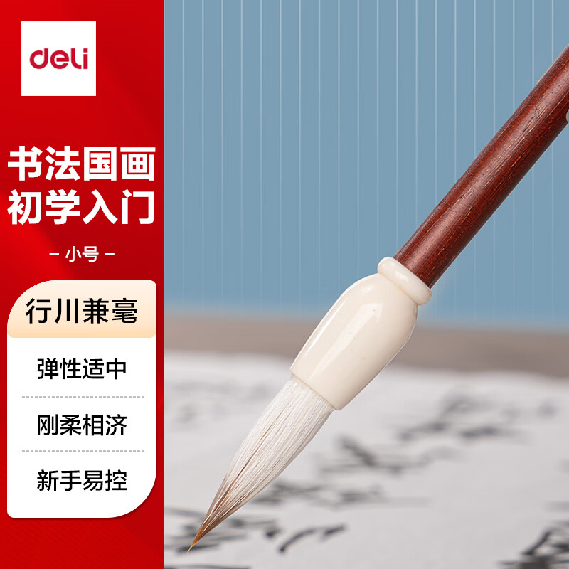 >得力(deli)书写用笔类用具 HW134-S 书法兼毫毛笔 行书单只 中楷 草书 国 画 勾线 初学成人 学生入门 练字文房四宝 湖笔