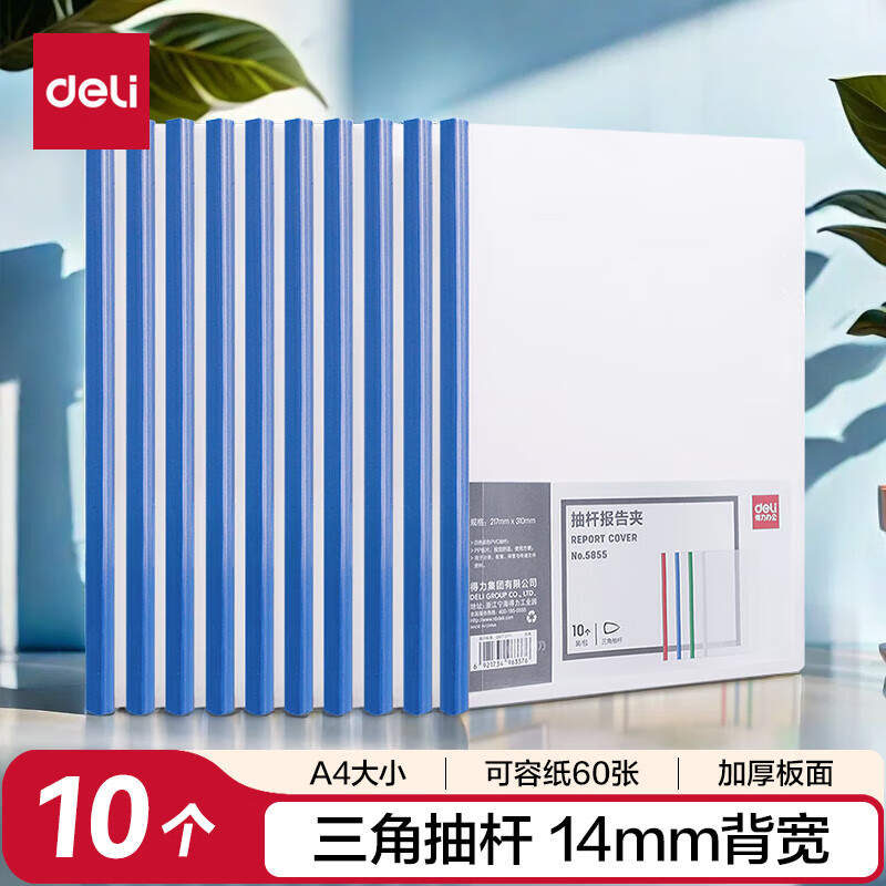 得力(deli) 文件夹 5855 10只A4加厚14mm 抽杆夹 拉杆夹 文件夹 简历夹 学生考试收纳