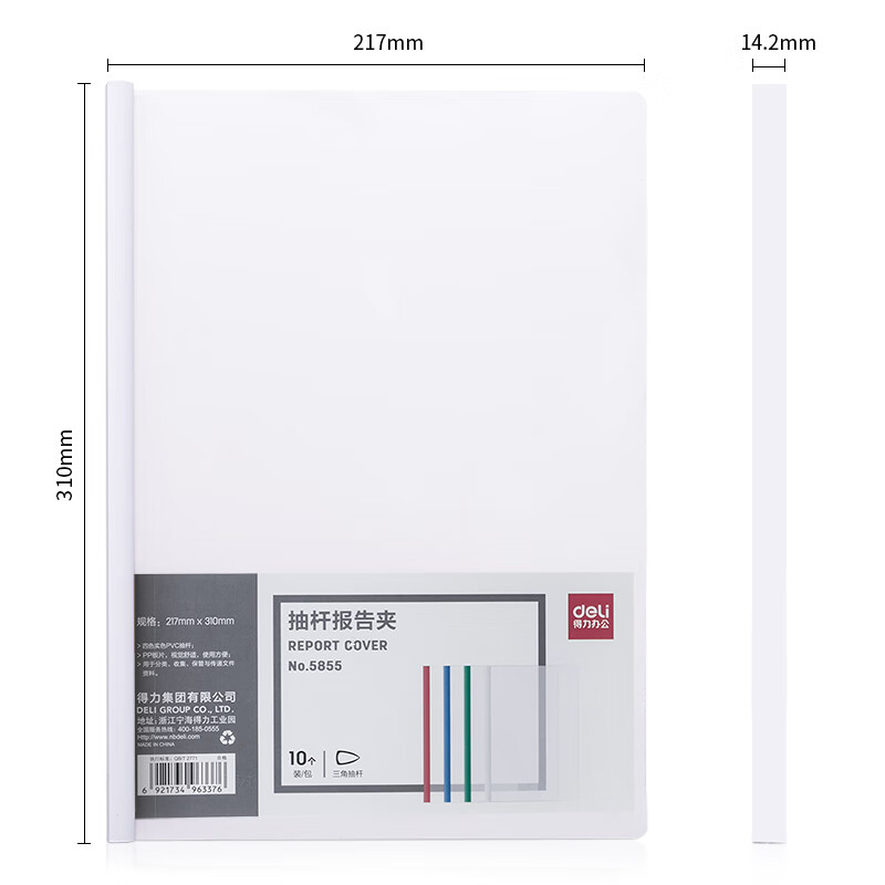 >得力(deli) 文件夹 5855 10只A4加厚14mm 抽杆夹 拉杆夹 文件夹 简历夹 学生考试收纳