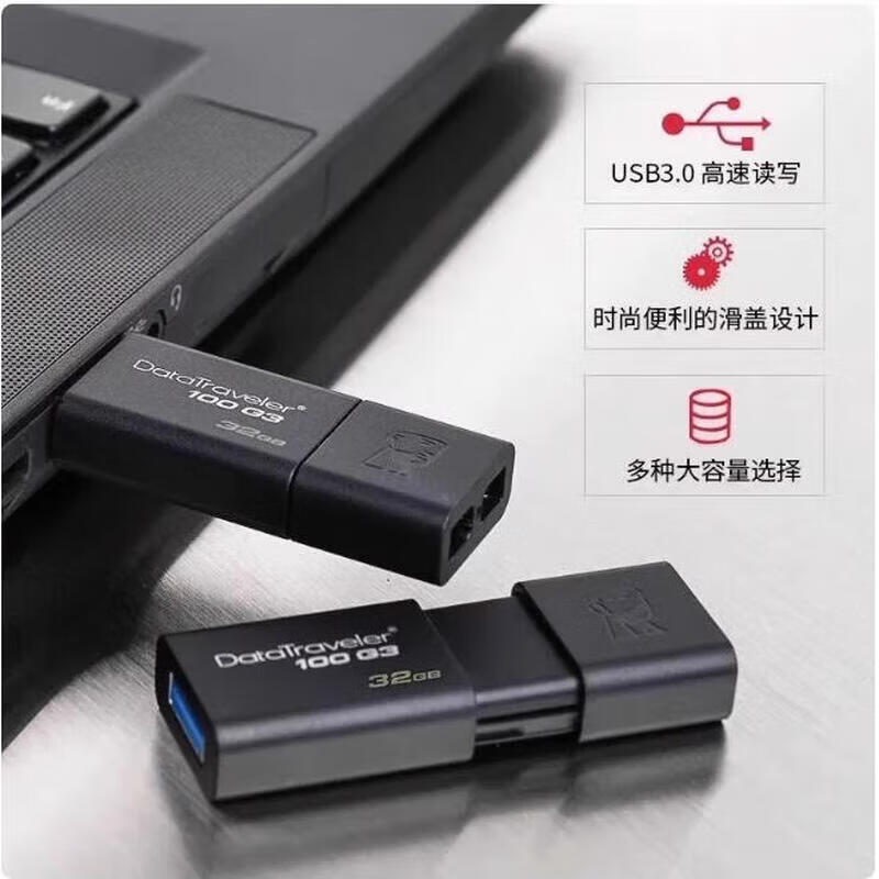 >金士顿 u盘/存储卡 7966 32GB 高速usb3.0 手机电脑两用 车载 学生车载优盘 黑色