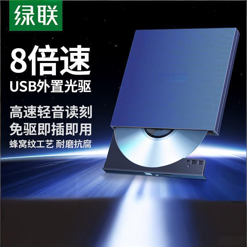 >绿联 光驱 40576 USB外置光驱 移动刻录机 8倍速高速读刻一体 适用笔记本电脑接DVD CD光盘 便携播放读取器