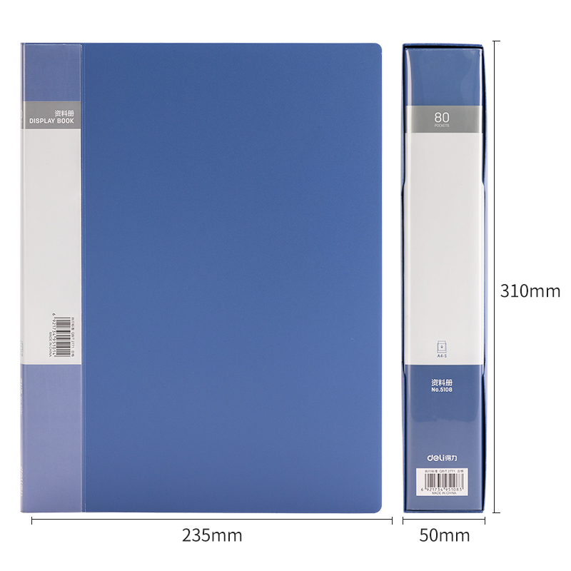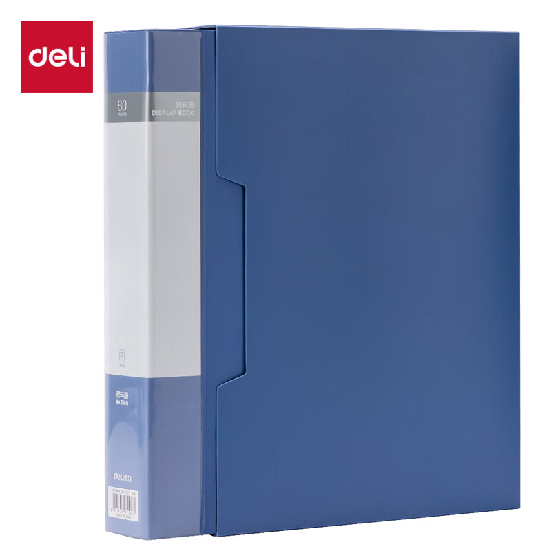 >得力(deli)文件夹 5108 A4/80页 蓝色 大容量 中小学生资料册 文件活页收纳册 插袋 档案文件夹 票证保护收纳 办公用品