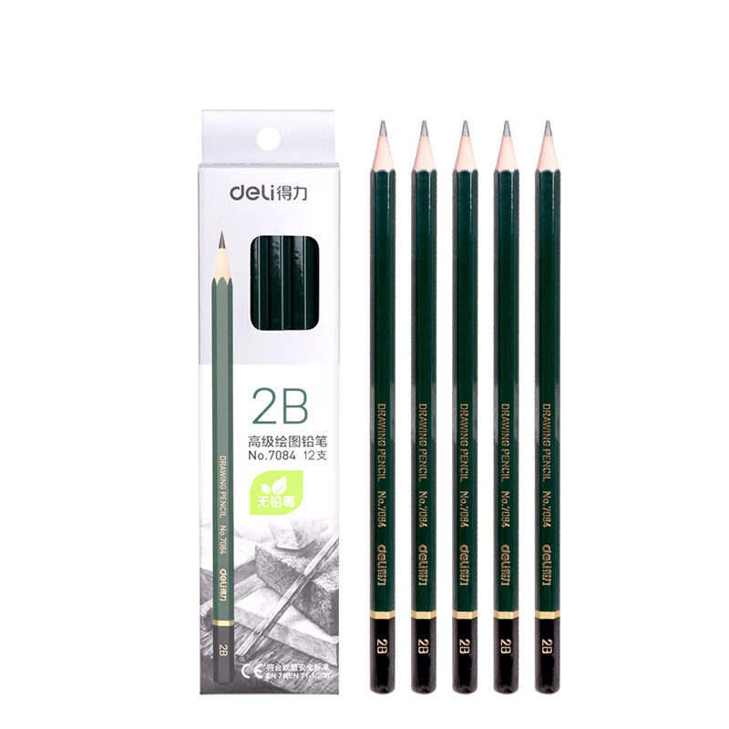 >得力(deli)书写用笔类用具 7084 2 B 12支/盒 素描绘图铅笔 六角学生铅笔 考试专用 填涂答题卡铅笔 学生开学文具