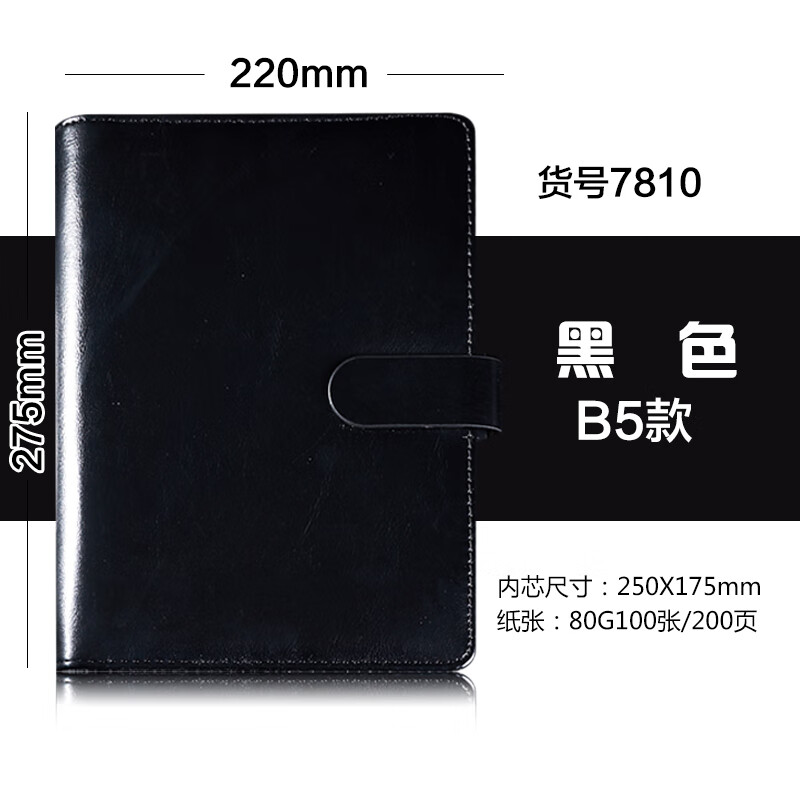博文 薄本册 7810 活页笔记本 文具商务皮 PU记事本 皮面日记加厚本子 B5 9孔 黑色