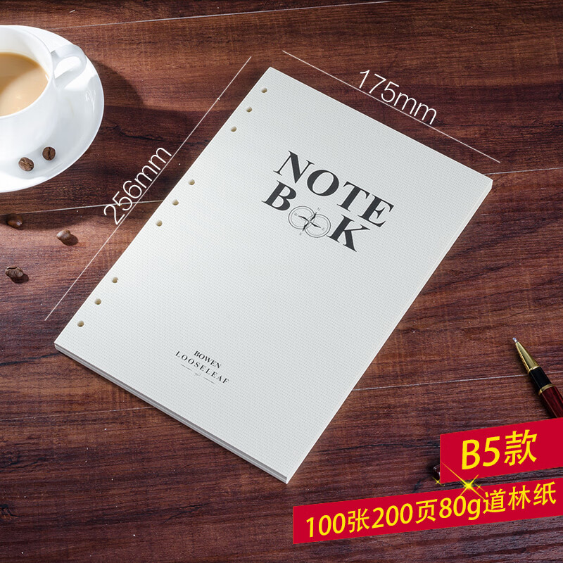>博文(BoWen)薄本册 7810 活页芯 B5 横线 9孔 100张 经典商务磁扣活页笔记本 记事本 办公文具 夹皮面日记本 加厚本子 活页本