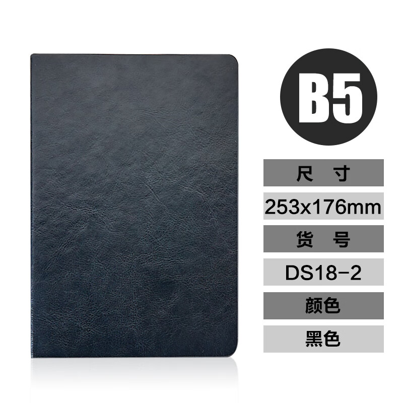 >博文 薄本册 DS18-2 PU软皮面记事本 B5笔记本 横线内芯有页码 小清新学生本 18K办公用本 黑色 96张