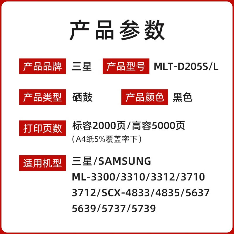 三星 硒鼓 MLT-D205S 硒鼓粉盒 3310ND 3710 4833HD 5637HR 打印机碳粉 三星MLT-D205S硒鼓 标容 2000页