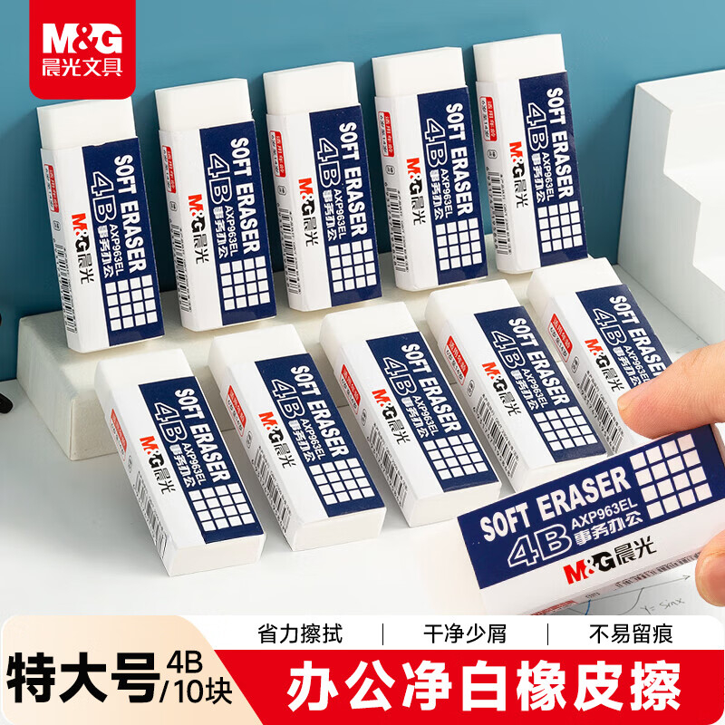 晨光(M&G) 橡皮 AXP963EL 10块特大号 净白 4B 橡皮擦 学生考试 美术绘图橡皮易擦 少屑 简约办公 中高考