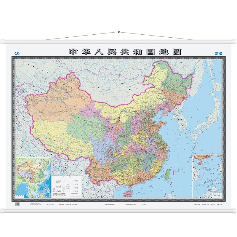 中国地图出版社 挂图 ZGDT-15 大尺寸 1.5米*1.1米 高清印刷 防水 覆膜带挂杆挂绳 挂画
