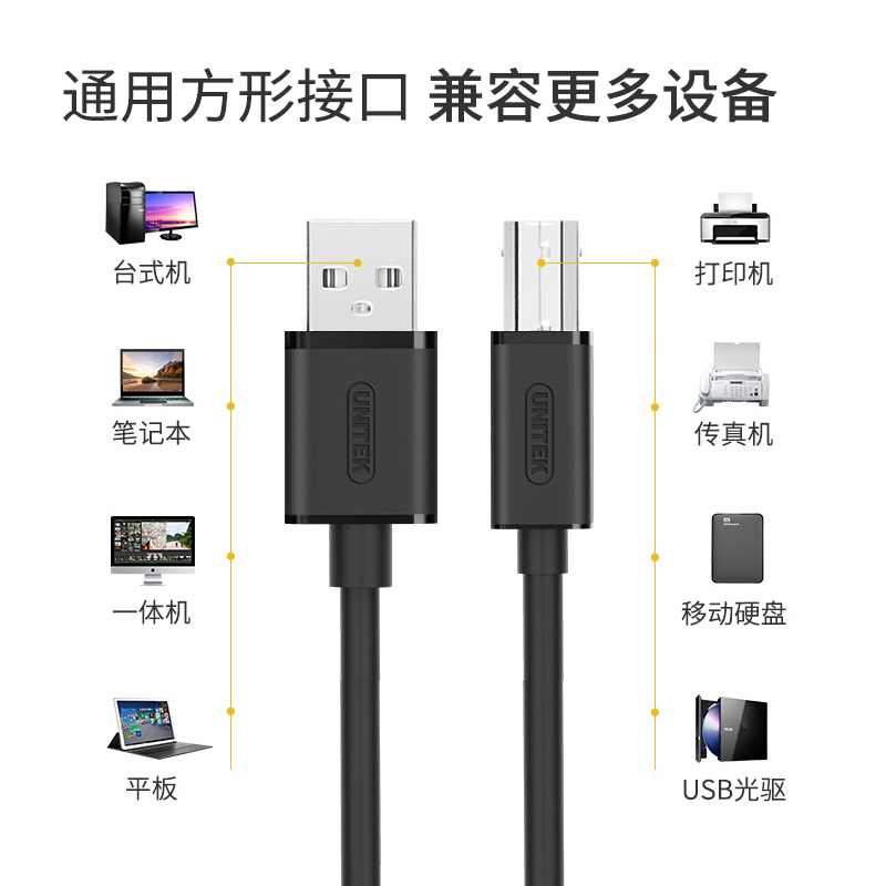 >优越者 数据线 Y-C431 高速USB打印机线 USB2.0方口打印 适用佳能 HP 爱普生 惠普连接线 供电线 打印数据线10米